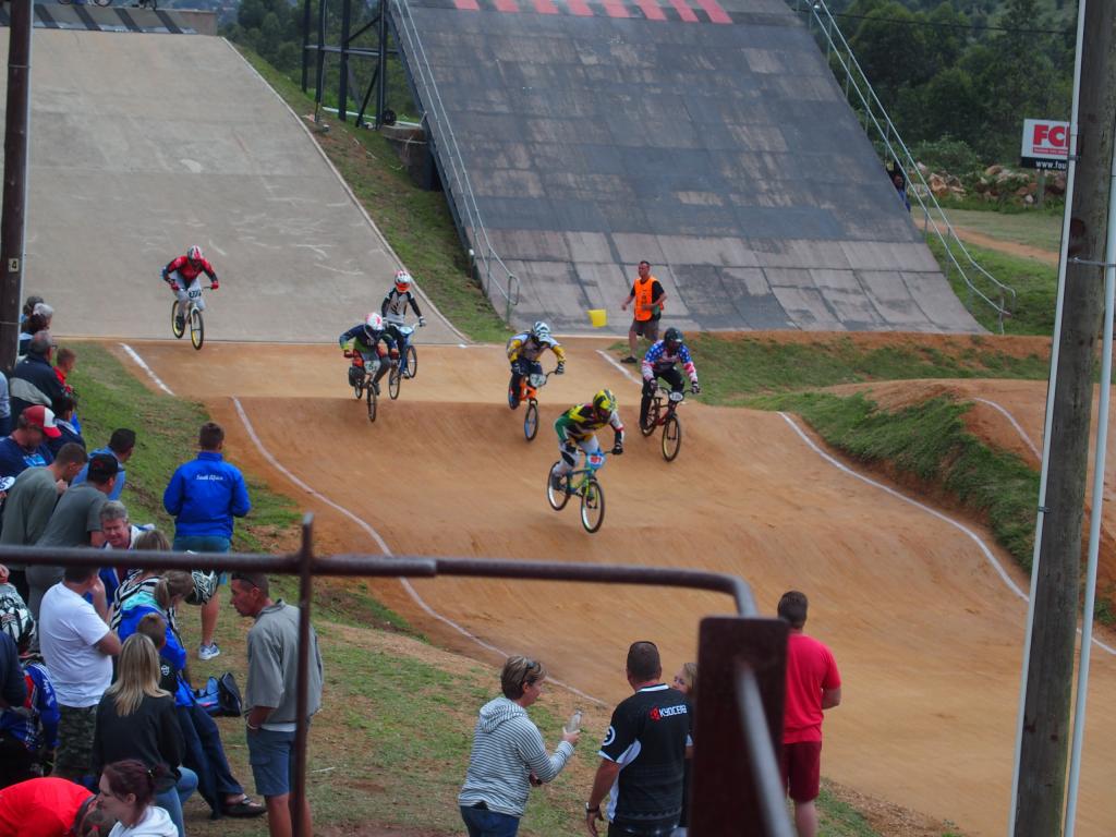 2016.10.01. Szomat Tegnap este a helyi klub (BMX Giba) vezetőivel vacsorázni mentünk. Tipikus Afrikai éttermet nem találtunk a közelben de elmondásuk szerint nincs is. Vacsora közben beszélgetünk általános dolgokról és természetesen a BMX sportágról. Négy pályát építettek Dél-Afrikában, ebből kettőn SX domb található. A Dél-Afrikai Szövetségnek 150 versenyzője van, és nagy hangsúlyt helyeznek a BMX sportág fejlesztésére. Szombaton reggel nem volt dolgom, hiszen a Nemzeti bajnokságot és regionális versenyt rendeztek. 8 órára mentem reggelizni és 10 órakor jött értem egy autó, mellyel egyenesen a BMX pályára mentünk. Délelőtt és délután két különböző szintű versenyt rendeztek. A kategóriák hasonlóak, mint nálunk. Ahol kevesebb a versenyző ott összevonják a korosztályokat. Összesen 9 Elite férfi versenyzőjük van, nincs Elite, Junior lány és Junior fiú.
