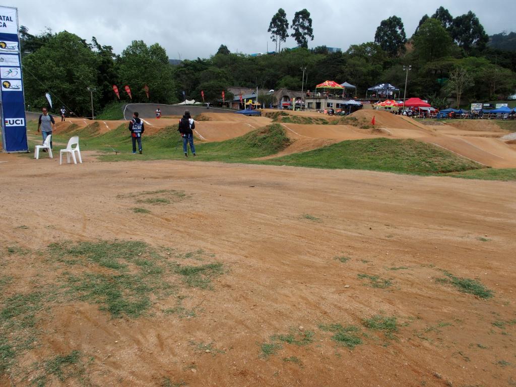 2016.10.02. Vasárnap Tegnap a futamok szünetei között volt időm tüzetesebben körbejárni az egész parkot. Három nehézségű MTB pálya létezik a hegy másik oldalában, dowhill, triál pályával kiegészítve. Közvetlenül a BMX pálya mellett kerékpármosó, étterem, ajándékbolt található. Az Afrikai kontinensen a Dél-Afrikai versenyzők vannak a legelőkelőbb helyen és Riói Olimpián egy versenyzőjük is részt vett. Szombaton éjszaka egy nagyon heves zápor zúdult a pályára és a felülete helyenként nagyon puha volt. A tervek szerint 9 órakor kezdődtek az edzések, de a pálya minősége miatt 20 percet kellett várnunk. Az edzési idő alapvetően ketté volt választva a challenge és az elite és junior csoport számára. A challenge kategória edzésével nem volt gond, noha voltak olyan szakaszok, ahol mély keréknyomok maradtak. Az elite és a junior csoport az SX dombot használta, de az első ugrató érkező oldala teljesen felázott és veszélyes volt, Ráadásul feltámadt a szél és újra esni kezdett az eső. Úgy döntöttem, hogy az SX domb helyett a kisebb 5 méteres indítódombot és a pro szakaszt fogják használni az elite és a junior versenyzők.