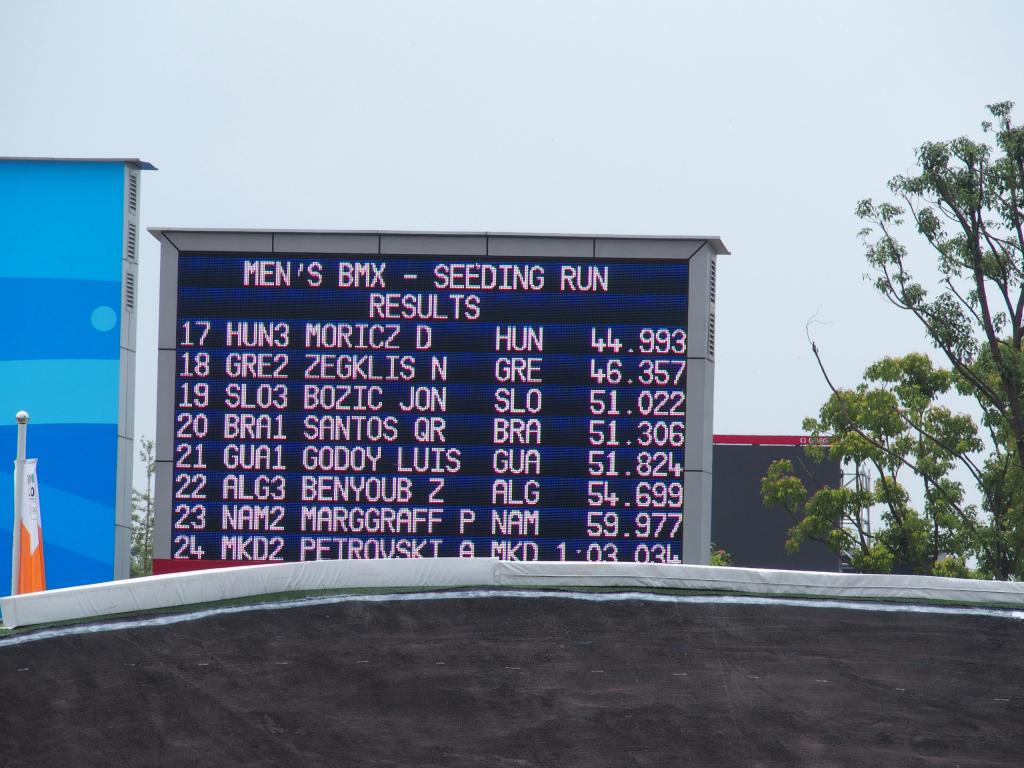 Végre elétkezett a Mi napunk! Este telefonon beszéltünk Somogyi Mikivel és egyeztettük, hogy a mai napon mi lesz a program és ki hova megy. Miki a két montis versenyzővel edzeni ment, én pedig Tolnai Zsanettal és Móricz Danival a BMX pályára. Kilenc órakor kezdődtek a BMX edzések, majd azt követően az időmérő futamok. A szervezetlenség a tetőpontján volt mai nap is bár igazából erről nem a Kínaiak tehettek. Legalább hat UCI-os bíróval találkoztam és egyiket sem láttam még BMX versenyen. Amikor a UCI központ kinevezte őket valószínűleg nem a BMX verseny volt a legfontosabb szempont.