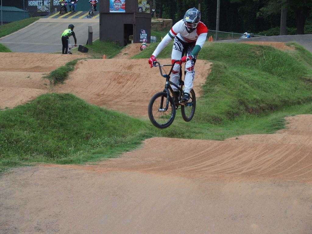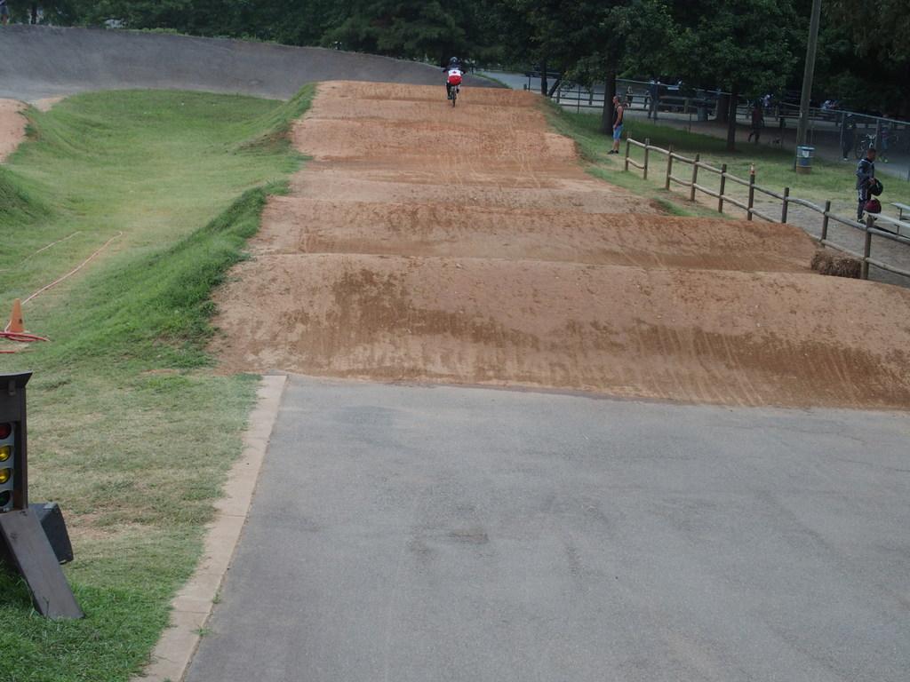 2017. 07. 25. Kedd Este Amint azt terveztük a közeli Charlott melletti nemzeti BMX pályára mentünk edzésre. A pálya egy rekreációs terület végén található. Aránylag kicsi indító domb, kis területre megtervezett BMX pálya. A kanyarok aszfaltozottak, a talaj teniszsalak keverék. Az akadályok nem túl nagyok, viszont pro szekciót is építetek. A junior és elite versenyzők többsége jött ide, hogy a pénteki hivatalos edzés előtt gyakorolni tudjanak.