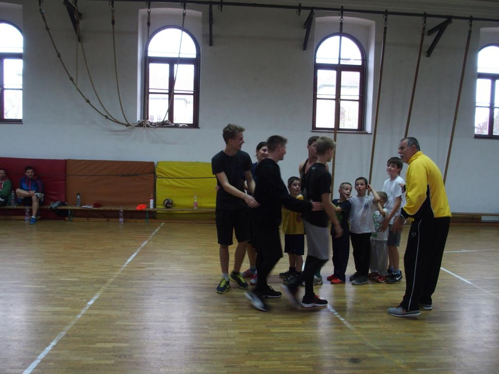 10.00 órakor általános bemelegítéssel, futással, majd alap koordinációs feladatok végrehajtásával kezdtük az edzést a veszprémi Kossuth Lajos általános iskola tornatermében.