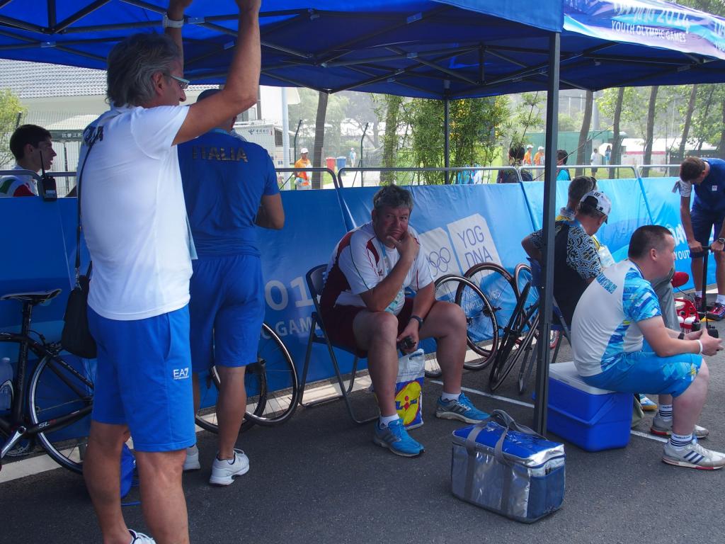 A mai napon, az Ifjúsági Olimpia hetedik napján, az országúti mezőnyversenyekre került sor. Reggel meleg időre ébredtünk. Gyors reggeli után, indultunk a buszhoz, ami 6 óra 40perckor már indult a kerékpáros helyszínre, a laoshani Nemzeti Park területére. Odaérkezve a lányok felszerelései összeszedve, összerakva, ők elmentek melegíteni, mi fiúk pedig Attilával addig még pihengettünk, és a csapatbokszból szurkoltunk a lányoknak, mikor elhaladtak előttünk.
