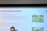 Következő meeting az első épületbe volt, ami azt jelenti, hogy mindenkinek vissza kellett mennie 20 percre lévő a központba felvenni a startszámtáblákat, parkoló engedélyeket, majd újra vissza a pályára és azokat szétosztani.